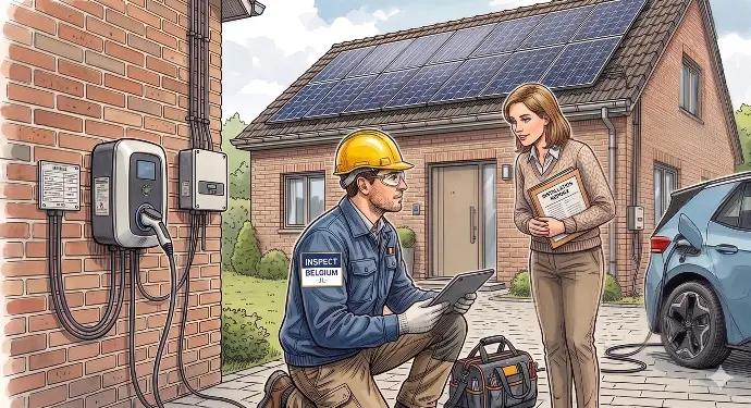 Inspect Belgium, votre partenaire de confiance pour l’inspection des installations électriques, bornes de recharge, panneaux solaires, installations de gaz et plus encore. Nous offrons des inspections professionnelles pour garantir que vos installations respectent toutes les normes de sécurité. Cliquez sur le bouton ci-dessous pour plus d’informations sur nos services, nos tarifs et pour demander une inspection.